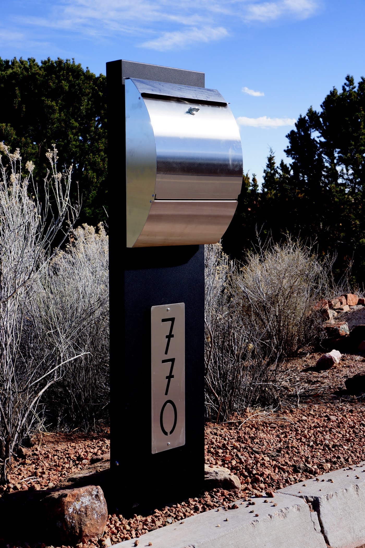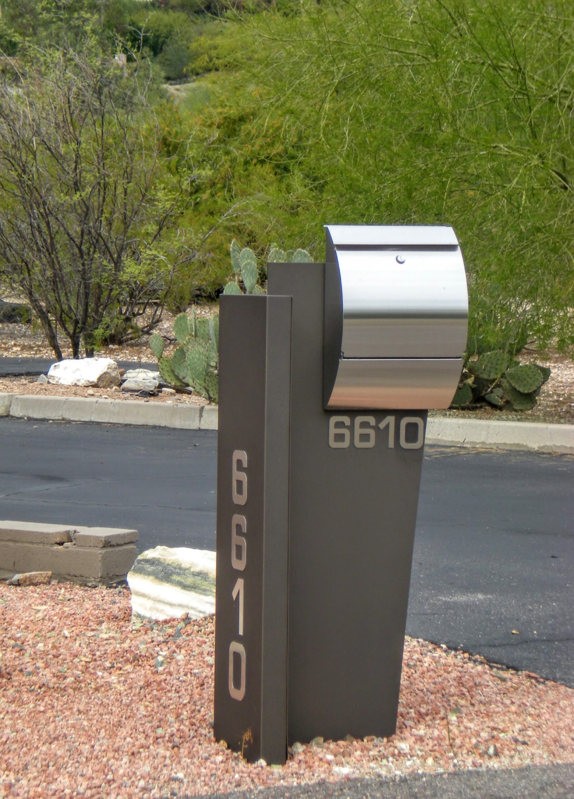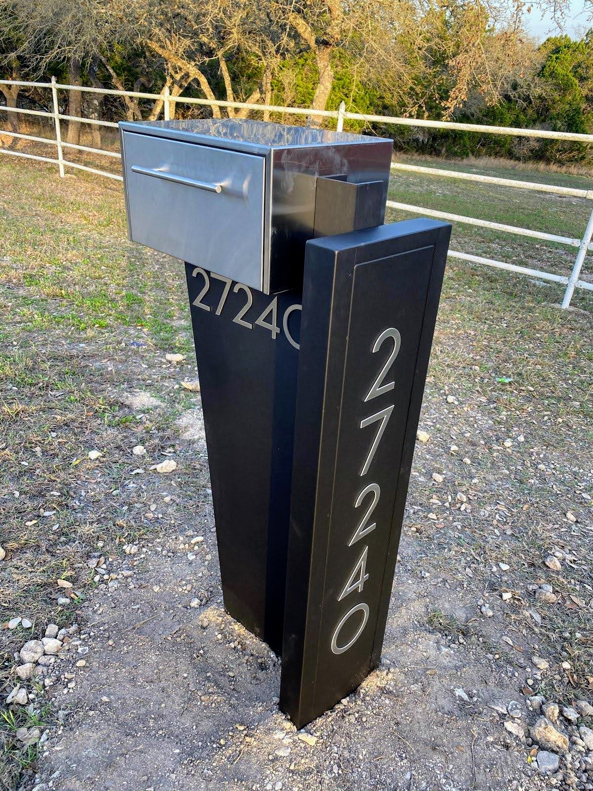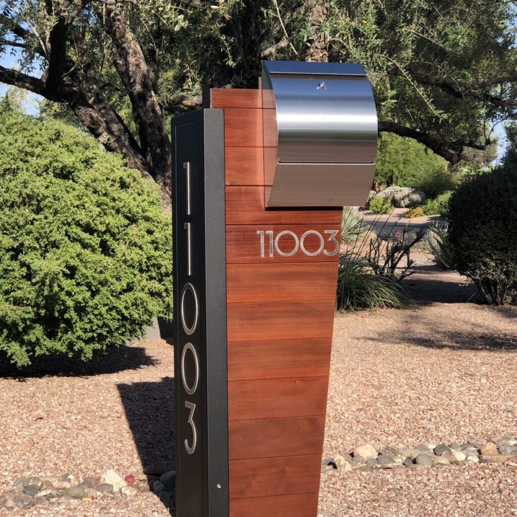 We customize our modern mailbox designs based on your choice of colors, address fonts for numbers and plaques, locking options, LED lights and more.